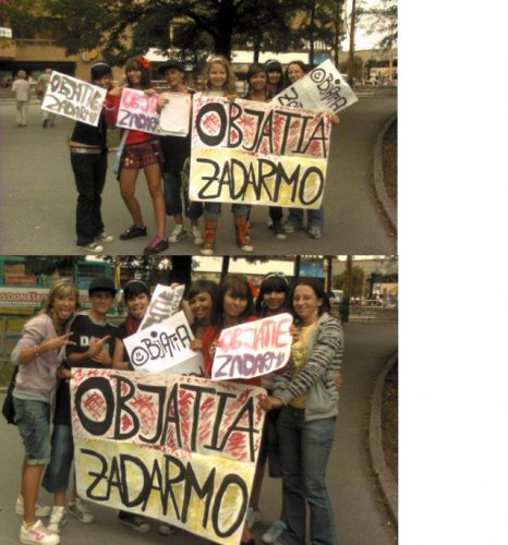 Nasa akciaa***FREE HUGS-alebo-OBJATIA ZADARMO---slo o to, ze kazdy kto nas objal, nam dal pOdpis...aby bol svet KRAJSIM a aby sa LUDIA MALI VIAC RADII♥ ;♥ ;♥ ;